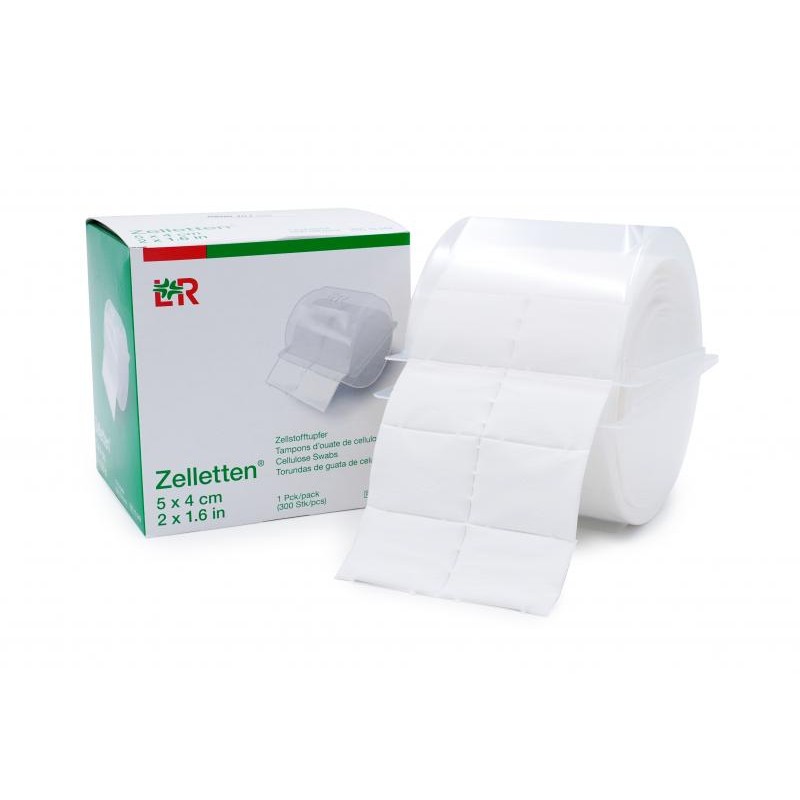 Tampons absorbants en cellulose, prédécoupés pour le nettoyage et la désinfection. Rouleau de 500 tampons 4cm x 5cm.